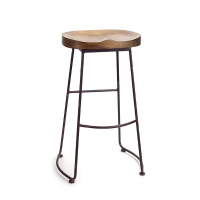 Wood and Metal Bar Stool 30.5 Inch Height Natural Bucket Seat for Home Seating By Melrose