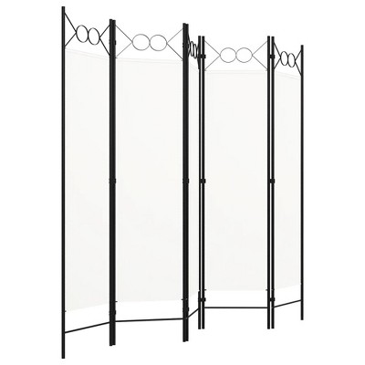 vidaXL 5-Panel Room Divider | Cream White | Free Standing | Industrial Modern Style | Iron Frame with Polyester Screens | Circle Top Design