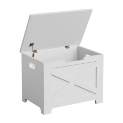 Solid Wood Storage Ottoman with Wooden Legs, White