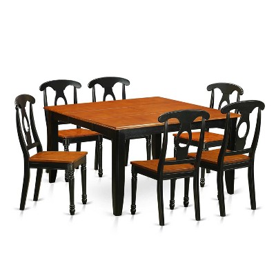 HomeStock 7-Piece Square Black & Cherry Finish Solid Wood Top Dining Table with 6-Chairs