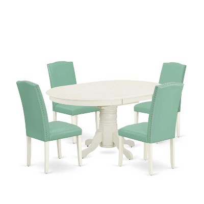 HomeStock 5-Pc Oval Linen White Finish Solid Wood Top Dining Table with 4 Parson Chair with Butterfly Leaf