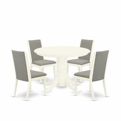 5-Piece Linen White Solid Wood Top - Round Dining Room Set - Seats 4