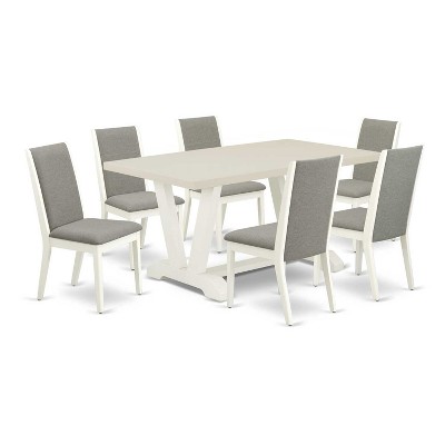 HomeStock 7-Piece Rectangle Natural Oak Finish Solid Wood Top Dining Table with 6 Parson Chairs