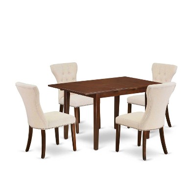 5-Piece Dinette Set - Solid Wood Dining Table & 4 Parson Chairs - Butterfly Leaf Table - Mahogany Finish