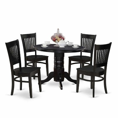 HomeStock 5-Piece Black Finish Solid Wood Top Dining table with 4 Chairs with Slat Back