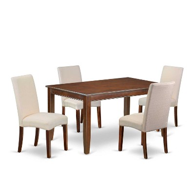 HomeStock 5-Piece Rectangle Mahogany Finish Solid Wood Top Dining Table with 4 Parson Chair