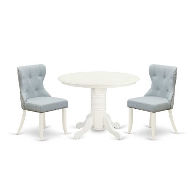 HomeStock 3-Pc Linen White Finish Round Solid Wood Top With Dropleaf Dining Table Set