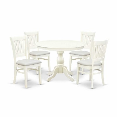 5-Piece Linen White Finish Solid Wood Top - Dining Room Set - Seats 4