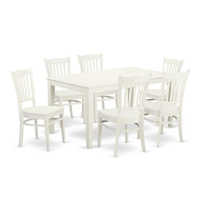 HomeStock 7-Pc Rectangle Linen White Finish Solid Wood Top Dining Table with 6 Parson-Chairs