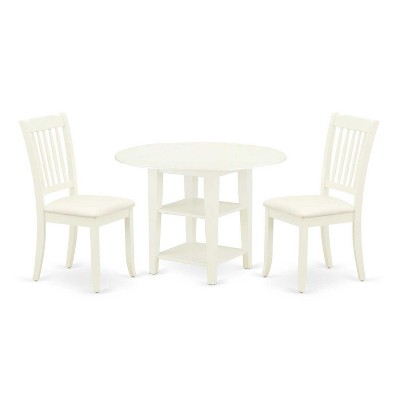 HomeStock 3-Piece Linen White Finish Round Solid Wood Top With Dropleaf Dining Table Set
