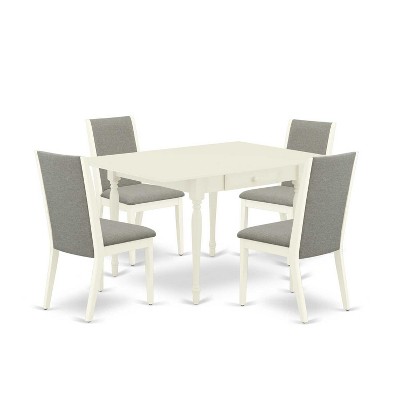 HomeStock 5-Pc Linen White Finish Solid Wood Top - Rectangular Dining Room Set with Butterfly Leaf - Seats 4