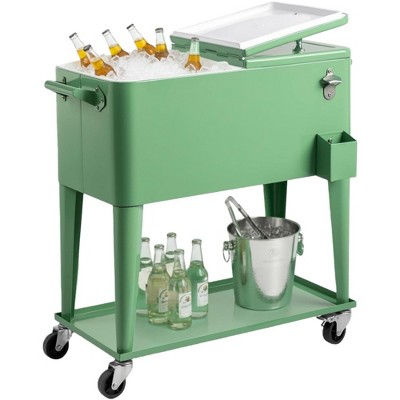 NAYSAYE 80 Quart Rolling Ice Chest Portable Bar Drink Cooler with Catch Basin, Bottom Storage Tray for Patio Party BBQ Beach, Green, 34.3"*15.2"*35.8"