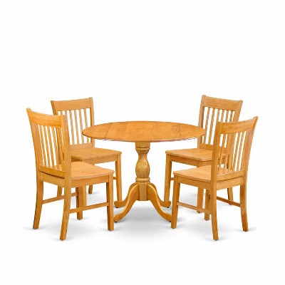 HomeStock 5-Piece Natural Oak Finish Solid Wood Top Dining table with 4 Chairs with Drop Leaf Slat Back