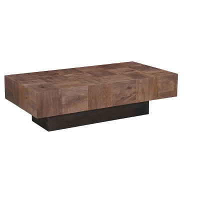 HomeRoots 59" Dark Brown and Black Solid Wood Block Coffee Table