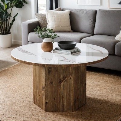 Hommoo 31.5" Round Coffee Table, Sintered Stone Top and Solid Wood Base