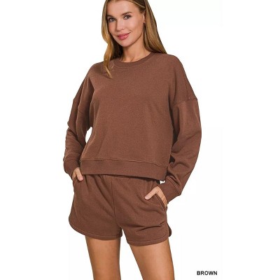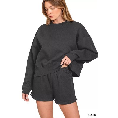 I am a Fashion junky Zenana Fleece Round Neck Sweatshirt and Shorts Set