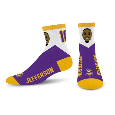 NFL Minnesota Vikings J Jefferson Bobble Youth Socks: Cushioned Heel & Toe, Knit Fabric