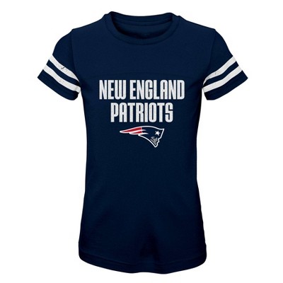 NFL New England Patriots Girls' Stripe Sleeve Fashion T-Shirt