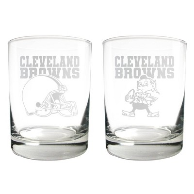 NFL Cleveland Browns Rocks Glass Set - 2pc: Double Old-Fashioned Glasses, 14oz Capacity