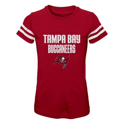 NFL Tampa Bay Buccaneers Girls' Stripe Sleeve Fashion T-Shirt