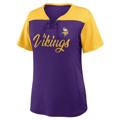 NFL Minnesota Vikings Women's Short Sleeve Lace Up V-Neck Top