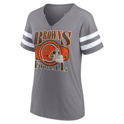 NFL Cleveland Browns Women's Gray Short Sleeve Split Neck T-Shirt