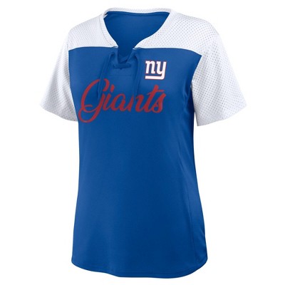 NFL New York Giants Women's Short Sleeve Lace Up V-Neck Top