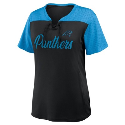 NFL Carolina Panthers Women's Short Sleeve Lace Up V-Neck Top