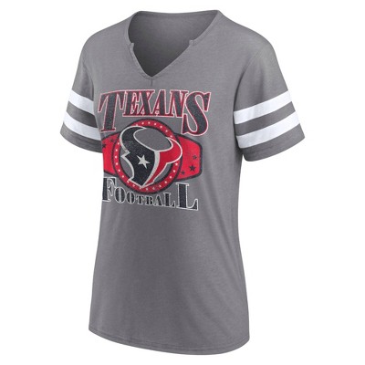 NFL Houston Texans Women's Gray Short Sleeve Split Neck T-Shirt
