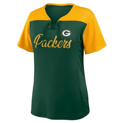 NFL Green Bay Packers Women's Short Sleeve Lace Up V-Neck Top