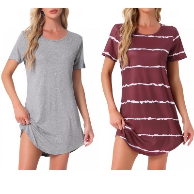 cheibear Women's Short Sleeve Mini length Striped Pajama Dress