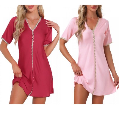 Get a good night’s rest in a warm and comfy nightgown. At Target, find a wide range of nightgowns to choose from. Slip off to dreamland in comfy style with a collection of satin nightgowns. These satin nightgowns make a great addition to your sleepwear for cooler nights. The satin fabric with a hint of spandex keeps you in cool comfort whether you’re settling in for the night or waking up to a lazy morning. You can also add leggings, a robe and fuzzy slippers for extra warmth during cooler weather. Browse through a range of nightgowns that are made from soft, comfy material. Pick from knit, lace, cotton, satin and more. You can also pick a long sleeved nightgown with a variety of necklines. It is sure to keep you snug and comfy throughout the night. Nightgowns also makes for a thoughtful gift for Christmas, Valentine’s Day Mother’s Day, birthdays, anniversaries, bachelorette party gifts or as a baby shower maternity gift for a mom-to-be. Find a nightgown for sleepwear, lounging around the house and pajama parties in casual daily life. Explore a collection of nightgowns and find the right pick for you.