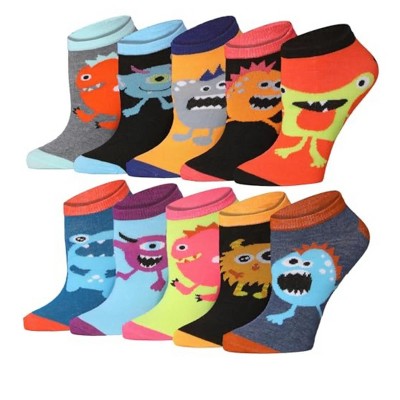 Tipi Toe Womens 10 Pairs Lovable Little Monsters Pattern & Mix Colors For Vibrant Style Low Cut/No Show Socks