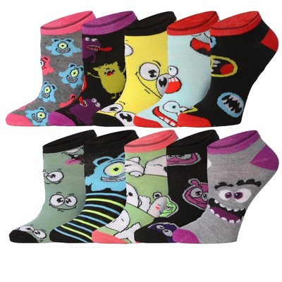 Tipi Toe Women's 20 Pairs Colorful Cute Quirky Monster Faces Patterened Low Cut/No Show Socks