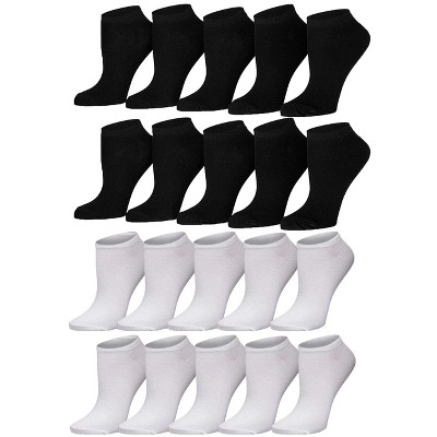 Solid Colored Black & White No Show Socks - 20 Pairs