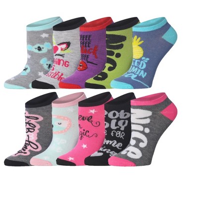 Tipi Toe Womens 10 Pack Whimsical Expressions Pattern & Mix Colors For Vibrant Style Ankle/Low Cut Socks