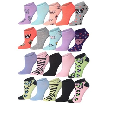 Tipi Toe Women's 20 Pairs Multi-Color Grey White Yellow Black Wild Safari No-Show Socks