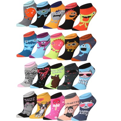 Tipi Toe Women's & Girls 20 Pairs Colorful Patterned Bold Pattern Mix Cute Ankle Socks For Women