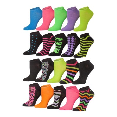Tipi Toe Womens & Girls 20 Pairs Colorful Patterned Electric Carnival Cute Ankle Socks For Women