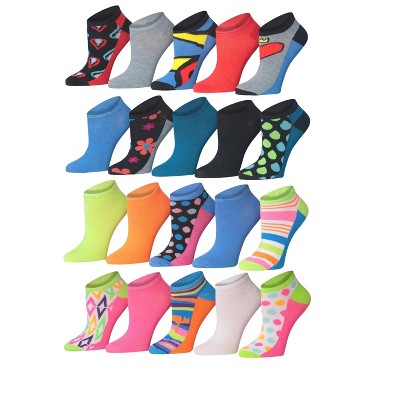 Women's Colorful Vivid Fun No Show Socks - 20 Pairs