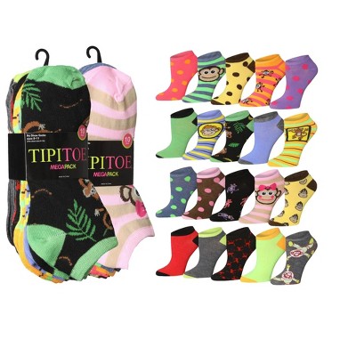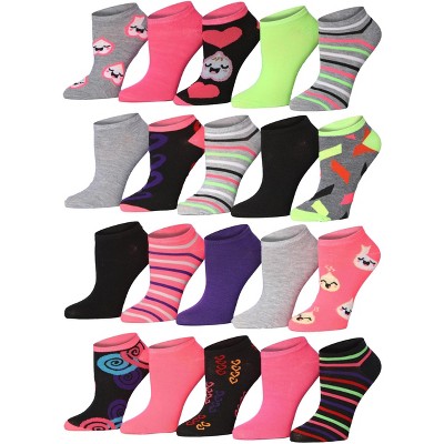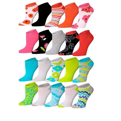 Tipi Toe Womens & Girls 20 Pairs Color Craze Pack Colorful Patterned Ankle/Low Cut Socks
