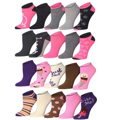 Tipi Toe Womens & Girls 20 Pairs Choco Pink Delight Colorful Patterned Ankle/Low Cut Socks