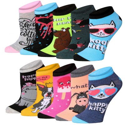 Tipi Toe Women's & Girls 10 Pairs Whimsy Critters Colorful Patterned Ankle/Low Cut Socks