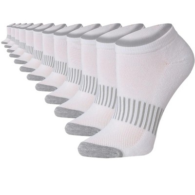 Solid Pure White Grey Stripe Low Cut Athletic Socks - 12 Pairs