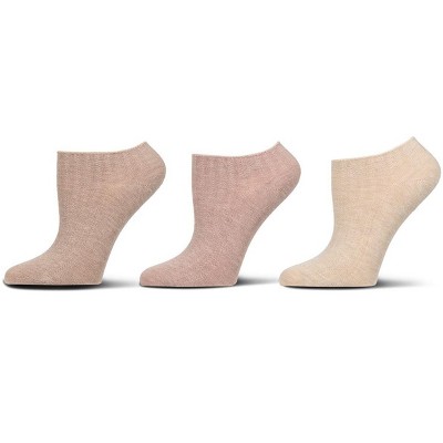 Memoi Women's 3 Pair Pack Chain Ribbed Bamboo Blend Lowcut Socks Ivory Heather Multi 9-11