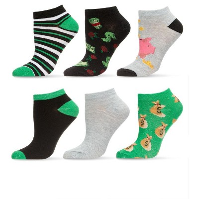Memoi Women's 6 Pair Pack Money Talks Low Cut Socks Black 9-11