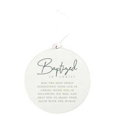 Dicksons Baptized Encouraging Verse Double Sided White Finish White 4.5 x 4 MDF Ornament Holiday Tree Ornament