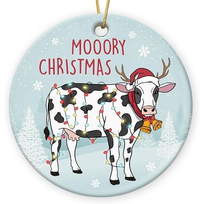 Lomsoe Cow Ornaments for Christmas Tree Farmhouse Christmas Cows Decor Cow Lovers Gifts Farm Animal Ceramic Ornaments Cows Decor Christmas Gift