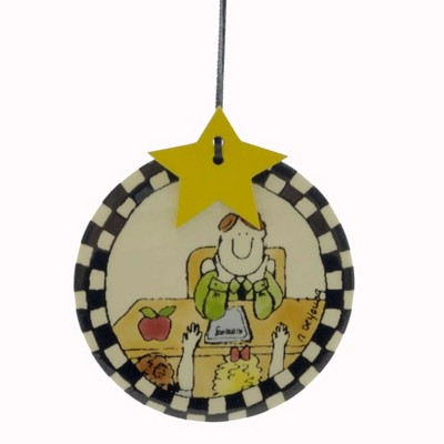 Craftoutlet.Com 3.5 Inch Teacher At Desk Tile Christmas Tree Ornament , Teacher Apple Students (1PC)