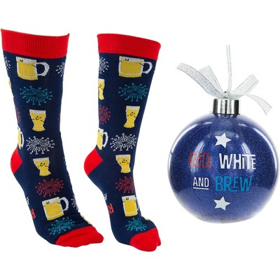 Pavilion Gift Company - Red, White and Brew - 4" Ornament with Unisex Holiday Socks - Tree Ornaments